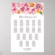This pink floral seating chart will help your guests find their table. It is suitable for a wedding with 17 tables and up to 170 guests.
