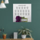 This 17 table wedding seating chart has table assignments for 170 guests (10 people per table.) The design is elegant, stylish, modern, romantic and chic, featuring a single long stemmed plum purple or eggplant coloured rose reflecting in water with waves and ripples. There is a fancy script calligraphy title reading "please find your table" as well as space for the names of the couple and the wedding date. Great way to make your reception beautiful while helping your guests find the right seat.