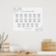 This seating chart contains table assignments for 170 guests at 17 tables, 10 guests per table. The design is simple yet elegant with dark gray and teal or turquoise text on a white background and silver faux foil lacy frills in the corners. Beautiful way to help your guests find the right table at your wedding reception. The title reads "please find your table" in elegant script calligraphy.