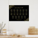 This seating chart contains table assignments for 170 guests at 17 tables, 10 guests per table. The design is simple yet elegant with gold text on a black background and gold faux foil lacy frills in the corners. Beautiful way to help your guests find the right table at your wedding reception. The title reads "please find your table" in elegant script calligraphy.