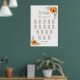 This yellow and pink floral seating chart will help your guests find their table. It is suitable for a wedding with 17 tables and up to 170 guests.