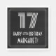 This vintage style and 1920s-1930s style inspired birthday-themed paper napkin design features a large Art Deco look inspired number "17", the message "HAPPY 17th BIRTHDAY,", a personalised name, and a border pattern consisting of lines. Fun, personalised paper napkins like this might be used at a celebration being held to honour somebody’s 17th birthday. [~Z0000395]