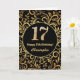 17th Birthday Black and Gold Floral Pattern Card