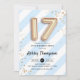 17th Birthday - Blue Stripes and Gold Balloons Invitation