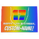 This cheerful and joyful birthday themed gift bag design features a large number “17” with a colourful rainbow spectrum inspired gradient pattern, along with the message “HAPPY 17th BIRTHDAY,”, and an editable recipient name. The background also features a fun multicolored rainbow spectrum inspired gradient pattern. Birthday themed gift bags like this might be a fun way to wrap gifts or presents being given to celebrate somebody’s 17th birthday. [~Z0000577]