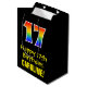 This exciting, colourful, and fun birthday-themed giftbag design features a large number "17" with a rainbow spectrum gradient style pattern, along with the message "Happy 17th Birthday,", and a customisable recipient name. The background is coloured black. A birthday themed giftbag like this might be a fun way to wrap a gift or present being given to somebody who is celebrating their seventeenth birthday. [~Z0000512]
