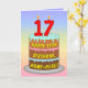 17th Birthday — Fun Cake & Candles, w/ Custom Name Card