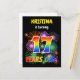 The front of this fun and vibrant birthday party invitation postcard design features an editable name, an exciting bursting celebratory fireworks inspired pattern, and the message "17 YEARS OLD!" having a colourful rainbow spectrum inspired gradient pattern. The back features an editable message that could describe when and where the party is being held, in addition to other relevant information. Invitation postcards like this could be sent to potential attendees of a party being held to celebrate the birthday of somebody who is turning 17 years old. [~Z0000452]