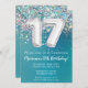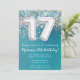 17th Birthday Invitation Teal and Silver Glitter 17th birthday party invitation for a 17 year old with modern script writing and fun foil balloons.