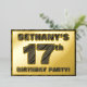 The front of this bold seventeenth birthday party/celebration foil invitation card features a customisable name, a large number “17th”, the message “BIRTHDAY PARTY!”, and a border, all featuring a rustic, yet sophisticated, faux wood grain appearance inspired pattern. The back features personalised details about the event, such as the date, time, venue, and any other information that may be useful. Editable invitations like these might be used to invite guests/attendees to a birthday gathering/party being held to honour somebody’s 17th birthday. [~Z0000595]