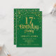 Elegant design in forest emerald green and faux glitter gold. Features stylish script font and confetti. Message me if you need custom age.