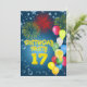 A fun 17th birthday party invitation with happy colours, balloons and fireworks. See the whole range of invitations and cards in my store.