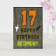 The front of this scary and spooky Hallowe'en birthday themed greeting card design features a large number "17" and the message "HAPPY BIRTHDAY,", plus a custom name. There are also depictions of a ghost and a bat on the front. The inside features a customizable birthday greeting message, or could perhaps be cleared and left blank if a message is to be written by hand instead. A personalized birthday card like this might be a fun way to acknowledge somebody’s seventeenth birthday that also falls on Halloween (October 31st). [~Z0000410]