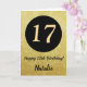 17th Happy Birthday Black and Gold Glitter Card with personalised name. For further customisation, please click the "Customise it" button and use our design tool to modify this template.