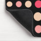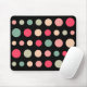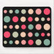 A design made up of five rows of seven circular spots ordered by size and arranged in alternating directions in an attractive pallet of colours.