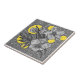 Reproduced from an antique tile in our personal collection. We have seen this pattern in sepia but ours is black and gray with a nicer yellow than the sepia version has. Look how the flower stems come through the bottom circle, giving this tile added visual dimension and interest.