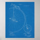 1885 Vintage high wheeler or Penny farthing bicycle US patent technical design illustration.