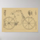 1891 Vintage chain drive bicycle with front brake and spring seat. US patent technical design drawing. All of our U.S. patent drawings have been restored and enhanced so they look great on small to large prints for framed art.