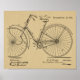 1891 Vintage bicycle US patent technical illustration. Front wheel suspension, hand brake and adjustable seat.