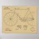 1899 Vintage bicycle bell US patent technical design drawing. The brake consists, essentially, of an endless elastic band, adapted to be passed around a friction-plate. All of our U.S. patent drawings have been restored and enhanced so they look great on small prints to wall posters for framed art.