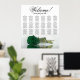 Enhance the elegance, romanticism, and flair of your wedding celebration with this 18 table seating chart, which accommodates up to 180 guests, with each table having 10 seats. The design showcases a stunning, contemporary floral motif that includes a solitary, long-stemmed rose in a rich, emerald green hue, placed horizontally and reflecting in a pool of water. The heading is written in elegant script calligraphy and reads "Welcome! Please find your seat," with the names of the newlyweds and the wedding date at the bottom. This seating chart offers a superb opportunity to warmly welcome your invitees and assist them in locating their respective seats with ease.