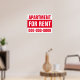 Do you have an apartment or house you would like to rent or sell? This fully customisable 18" x 24" “Apartment For Rent" sign will fit your specific needs! Whether you are selling or renting a house or apartment. This sign is ideal for advertising inside apartment buildings or condos. Each line and background colour can be changed to whatever fits your situation. Quantity discounts are available, when you buy 4 or more of the same sign!