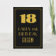 The front of this vintage style and 1920s-1930s style inspired birthday greeting card design features a large art deco look inspired number "18", the message "HAPPY 18th BIRTHDAY,", a personalized name, and a border pattern consisting of lines. There is a black-colored background on the front. The inside features a personalized birthday greeting message, or could perhaps be cleared and left blank if a message is to be written by hand instead. A customizable birthday card like this might be a fun way to send birthday wishes to somebody who is celebrating their eighteenth birthday. [~Z0000502]