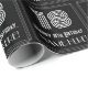 This vintage style and 1920s/1930s style inspired birthday-themed wrapping paper design features a large Art Deco look inspired number "18", the message "Happy 18th Birthday,", a personalised name, and a border pattern consisting of lines. Birthday themed wrapping paper like this might be a fun way to wrap a gift or present being given to somebody who is celebrating their 18th birthday. [~Z0000393]