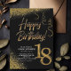 18th Birthday Black & Gold Glitter Modern Invitation