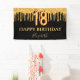 Elegant, classic, glamorous and girly for a 18th birthday party. A chic black background. Decorated with faux gold glitter drips, paint dripping look. Personalize and add a name. With the text: Happy Birthday plus the birthday girls name. The text is written with a modern golden colored hand lettered style script. Number 18 is written with a balloon style font.