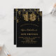 A modern, stylish and glamourous invitation for a 18th birthday party. A black background, decorated with confetti. The name is written with a modern hand lettered style script. Personalise and add your party details. Number 18 is written with a trendy balloon style font, leopard print.