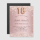 A magnet invitation for an elegant 18th birthday party. A blush pink gradient background. Decorated with faux glitter dust. Personalise and add a name and party details. The name is written with a hand lettered style script. Number 18 is written with rose gold coloured balloon style font.