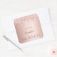 A sticker for a girly and glamorous 18th birthday party. A faux rose gold metallic looking background with an elegant faux rose gold glitter drips, paint drip look. The text: The name is written in dark rose gold with a large modern hand lettered style script. Template for name, age 18 and a date.