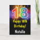 18th Birthday Colorful Rainbow Fireworks Card with personalized name. For further customization, please click the "Customize it" button and use our design tool to modify this template.