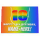 This fun and cheerful birthday themed giftbag design features a large number “18” with a colourful rainbow spectrum inspired gradient pattern, along with the message “HAPPY 18th BIRTHDAY,”, and a personalised recipient name. The background also features a joyful multicolored rainbow spectrum inspired gradient pattern. Birthday themed gift bags like this might be used when giving gifts or presents in celebration of somebody’s eighteenth birthday. [~Z0000577]