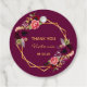 Back: Burgundy coloured background. Name, date and the text: Thank You. Golden letters.