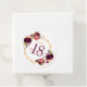 On front: Trendy bohemian boho style. Decorated with watercolored roses in burgundy and pink. Elegant white background. A faux gold geometric frame and templates for your name, age 18 and date. Text in pink, purple and gold colour. The name is written with a modern and stylish hand lettered script.