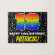 This colourful and vibrant birthday-themed jigsaw puzzle design features a large number “18” with a multicolored rainbow spectrum inspired gradient pattern, along with the message “HAPPY 18th BIRTHDAY,”, and a personalised recipient name. The background features an eye-catching, multicolored star field pattern. A fun, editable birthday puzzle like this might be used to celebrate somebody’s eighteenth birthday. [~Z0000607]