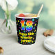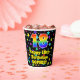 This fun and cheerful birthday themed paper cup design features a large number “18” with a rainbow spectrum gradient inspired pattern, along with the message “Happy 18th Birthday,”, and a custom name. The background features a colourful pattern inspired by a field of stars. Colourful, vibrant paper cups like this might be fun to use at a birthday celebration being held to celebrate somebody’s eighteenth birthday. [~Z0000540]