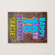 This fun birthday puzzle design features the message “HAPPY 18TH BIRTHDAY,” having a colourful, vibrant, graffiti and urban street art inspired look, in addition to a custom recipient name. The background features a pattern inspired by the look of a brick wall. A fun, customisable birthday puzzle like this might be a fun way to deliver a birthday greeting message to somebody who is celebrating their eighteenth birthday. [~Z0000532]