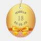 Elegant, classic, glamourous and feminine. A faux gold coloured bow with golden confetti, sparkle, a bit of bling and luxury for a 18th birthday party decor, favour, keepsake or as a gift. A shiny faux gold metallic looking background. Template for a name, age 18 and a date. Date of birth or date of the party. Brown letters and curved text.