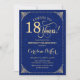 Elegant vintage navy blue and faux gold design with damask pattern. Features script font. Cheers to 18 years! Can be personalised into any age! Message me if you need further customisation.