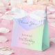 Elegant, classic, glamourous and girly for a 18th birthday party favours. A trendy holographic coloured background in pink, purple and mint green. With the text: 18th Birthday and Thank You written with a modern hand lettered style script. Decorated with drips, paint dripping look in purple, pink. Personalise and add a name and a date. Grey coloured text.