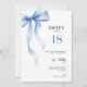 Make your teenager's special day even more memorable with our 18th birthday invitation featuring a beautiful blue bow design. This elegant and classy invitation is an editable template that you can personalise easily, making it perfect for a 18-year-old girl’s celebration party. With its minimalist style and charming watercolor coquette element, this invitation is not only visually appealing but also practical, allowing you to send a stylish blue ribbon invite with just a few clicks. Choose our printable card to ensure that every detail stands out as you invite friends and family to join in the festivities. Celebrate her journey into teenage years with a stunning invite.