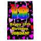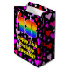 This colourful and joyful birthday-themed gift bag design features a large number “18” with a rainbow spectrum gradient inspired pattern, along with the message “Happy 18th Birthday,”, and an editable name. The background features a pattern of heart shapes with colours like purple, red, and pink. A cheerful birthday themed gift bag like this might be used when giving a gift or present in celebration of somebody’s eighteenth birthday. [~Z0000551]