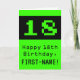 The front of this fun and nerdy birthday-themed greeting card design features a large green retro video game style number "18". It also features the birthday greeting message "Happy 18th Birthday,", and a name that can be edited. The inside features a customizable birthday greeting message, or could perhaps be cleared and left blank if a message is to be written by hand instead. A geeky birthday card like this might be a fun way to send birthday wishes to somebody who is celebrating their eighteenth birthday. [~Z0000430]