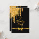 Elegant, classic, glamourous and girly style party invitation. A faux gold coloured ribbon and bow with faux golden glitter drip. Black background. With the text: 18th Birthday Party on front written with a modern hand lettered style script.