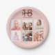 For a 18th birthday party, celebrating her life with a collage of 6 of your own photos. Personalise and add a name, age 18 and a date. Date of birth or the date of the party. Dark rose gold and black coloured letters. A trendy rose gold, blush pink coloured background.