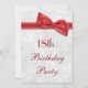 Elegant 18th Birthday Party invitations for teenage girls. Eighteenth / eighteen years old birthday party invites. Beautiful white damask pattern background with a pretty, stylish red bow and ribbon image. These glamourous, chic, classy invites are beautifully sophisticated and are decorated / printed on both sides. PLEASE NOTE: All invites on Zazzle have flat printed images. Bow and ribbon images purchased from digital-designs-by-elena. If you need any assistance customising your invitation please contact me through my store and I will be happy to help.