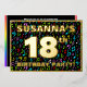 The front of this joyful eighteenth birthday party foil invitation card design features a customisable name, a large number “18th”, the message “BIRTHDAY PARTY!”, and a border. The background of the front features a fun, colourful musical symbols and notes pattern. The back features personalised details about the event, such as the date, time, venue/location, and any other relevant information. Personalised invitations like these might be a fun way to invite guests/attendees to a birthday party/gathering being held to honour somebody’s 18th birthday. These might be more meaningful if that person is a songwriter, a composer, a singer, a musician, or a lover of music. [~Z0000601]